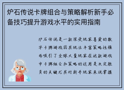 炉石传说卡牌组合与策略解析新手必备技巧提升游戏水平的实用指南